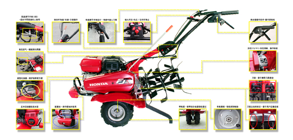 ・ FJ500仕样设计充分吸取了Honda五十多年生产耕耘机的经验,并考虑了中国土壤的特质、操作者的操控性及安全性。