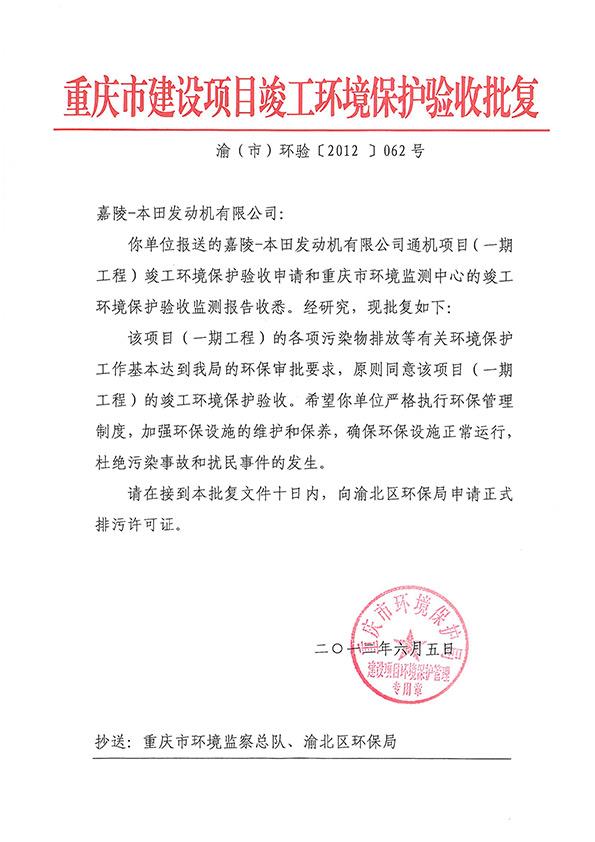 建设项目竣工环境保护验收批复(一期)
