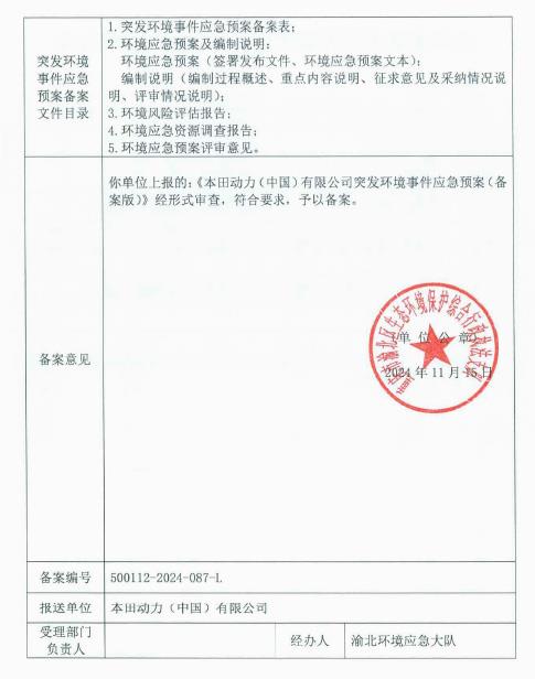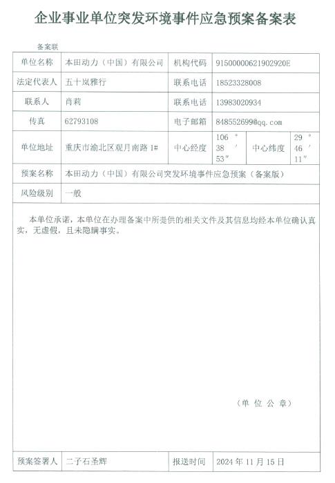 资质证书—企业信息 About—本田动力(中国)有限公司